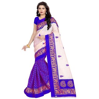 SVB Sarees Blue Bhagalpuri Silk Block Print Saree with